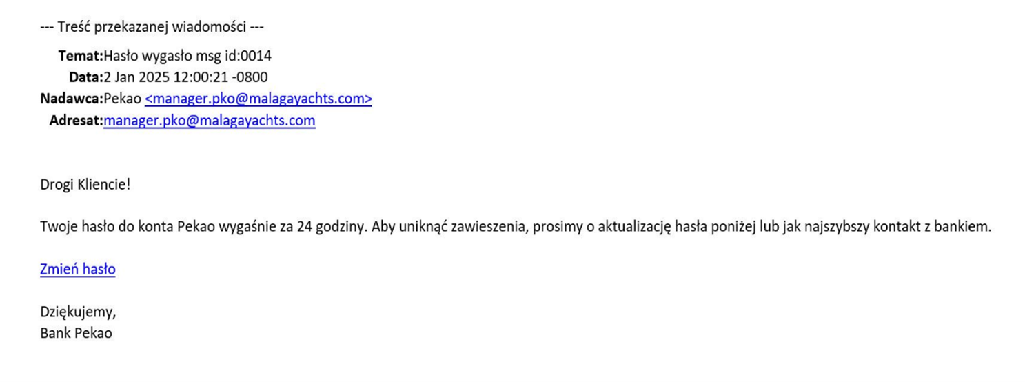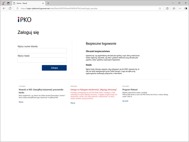 Criminals exploit the image of well-known institutions to enhance the credibility of phishing campaigns. For this reason, they regularly impersonate Polish banks. Through such schemes, they fraudulently obtain information such as payment card details, credentials for online banking, and BLIK codes. In December 2024, this method was still in use. The identified phishing campaigns utilized the branding of the following banks: