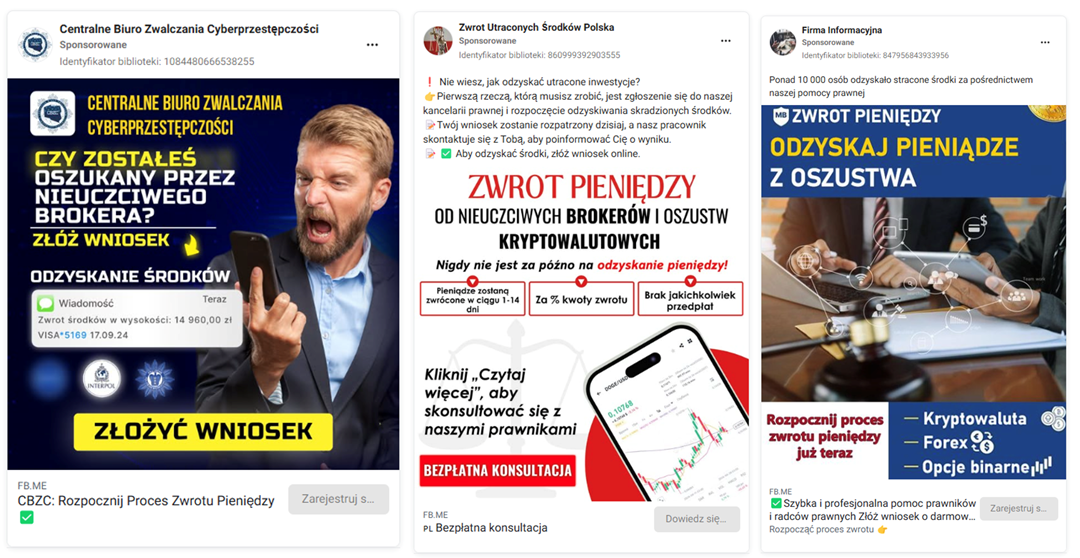 It is worth noting that in November 2024 again, most of the detected ads pertained to the second stage of the described scheme. In this stage, the criminals deceive individuals who were previously scammed, under the pretense of a supposed opportunity to recover the money they had initially lost. In reality, this is another attempt to defraud individuals who have already fallen victim to this scenario once before (fig. 3).