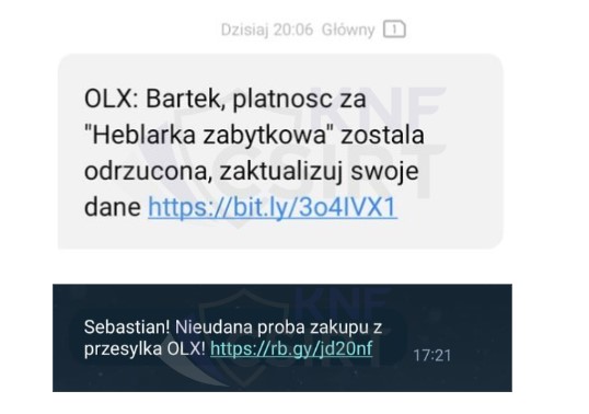Rysunek 5 Przykładowe wiadomości SMS z linkami phishingowymi